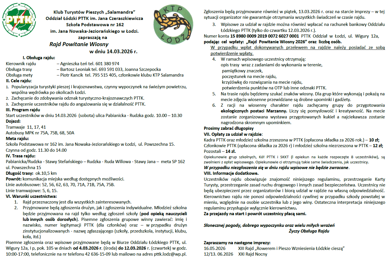 Rajd Powitania Wiosny – 14.03.2026